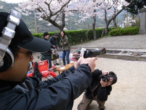 TVをベストポジションに配置するRyu夫妻。